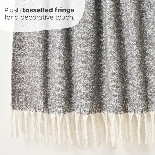 Faux Mohair Fringed Throw Grey