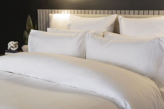 300 TC Soho Sateen Stripe Duvet Cover Set in White