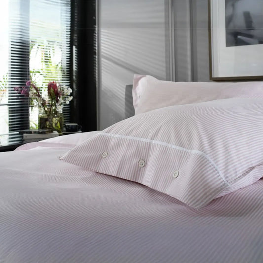 100% Cotton Pinstripe Duvet Cover Set Rose Pink & White