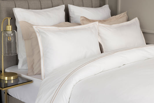 Egyptian Cotton Savoy Duvet Cover Set in White & Oyster