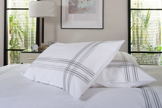 100% Cotton Lines White & Silver Duvet Cover Set