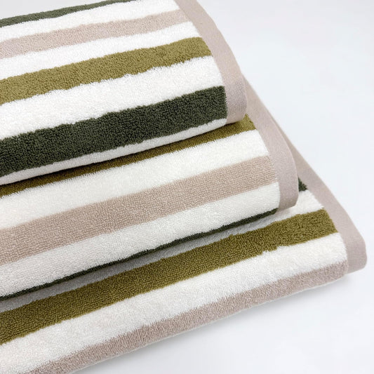 Bobble Bath Pedestal Shower Mats & Striped Towels in Greens