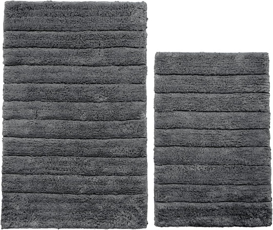 100% Cotton Two Piece Rib Bath Mats 2 Sizes Charcoal Grey