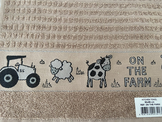 On The Farm Tea Kitchen Towel Latte