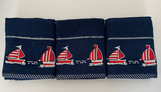 Sail Boat Design Tea Kitchen Towel Navy