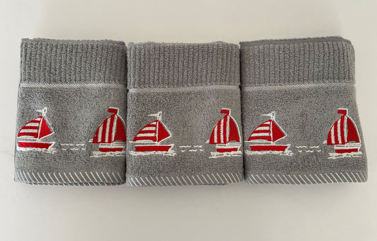 Sail Boat Design Tea Kitchen Towel Grey