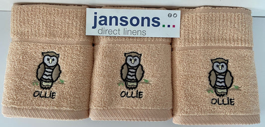 Ollie Owl Design Tea Kitchen Towel Beige