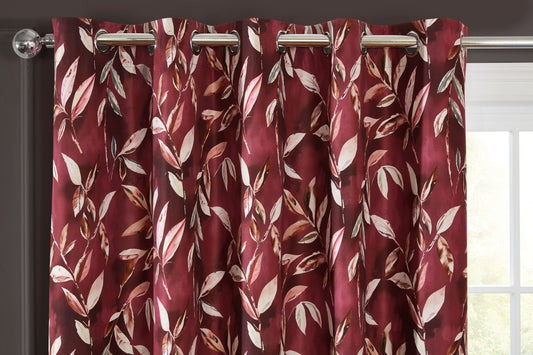 3 Pass Blackout Floral Leaf Design Curtains in Wine
