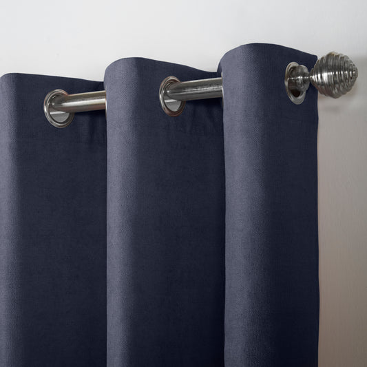 Chenille Velvet Room Darkening Curtains Eyelet in Navy Blue