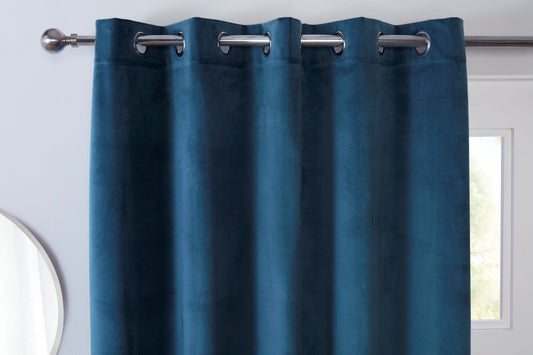3 Pass Blackout Floral Leaf Design Curtains in Navy Blue