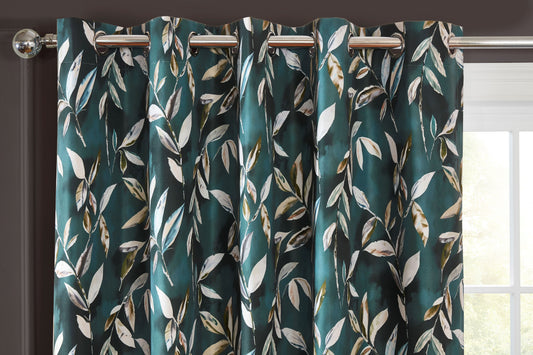 3 Pass Blackout Floral Leaf Design Curtains in Bottle Green