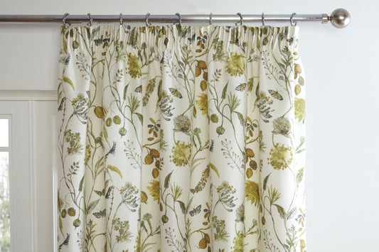 Floral Jacquard Pair Curtains In Natural Sage Green