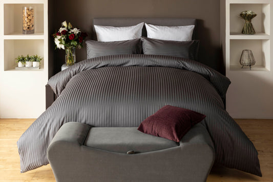 540 TC Egyptian Cotton Satin Stripe Charcoal Grey