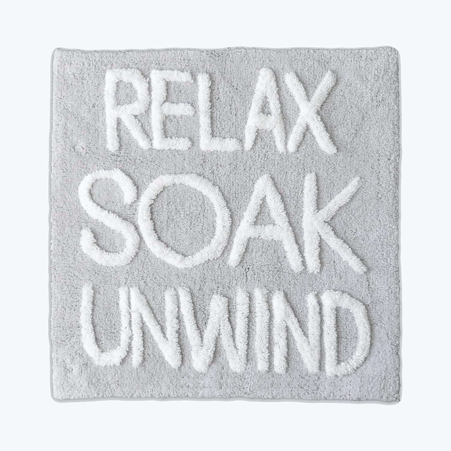 - Add a touch of softness to your bathroom routine with these tufted slogan RELAX SOAK UNWIND Bath Mats. Crafted using a blend of cotton and polyester for comfort and long-lasting durability.