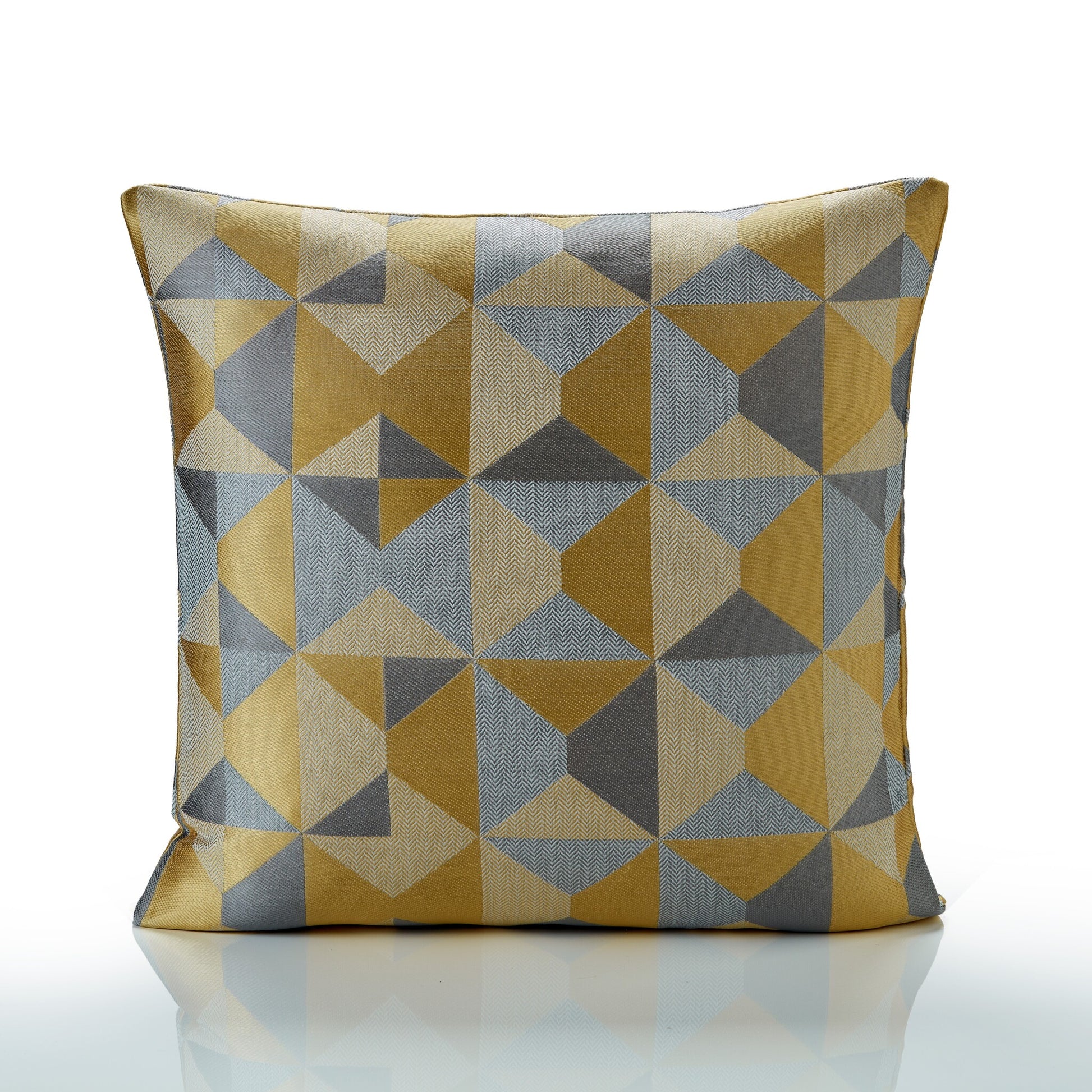 - The design is two tones of ochre yellow and grey with a geometric design to both curtains with a plain lining to the reverse